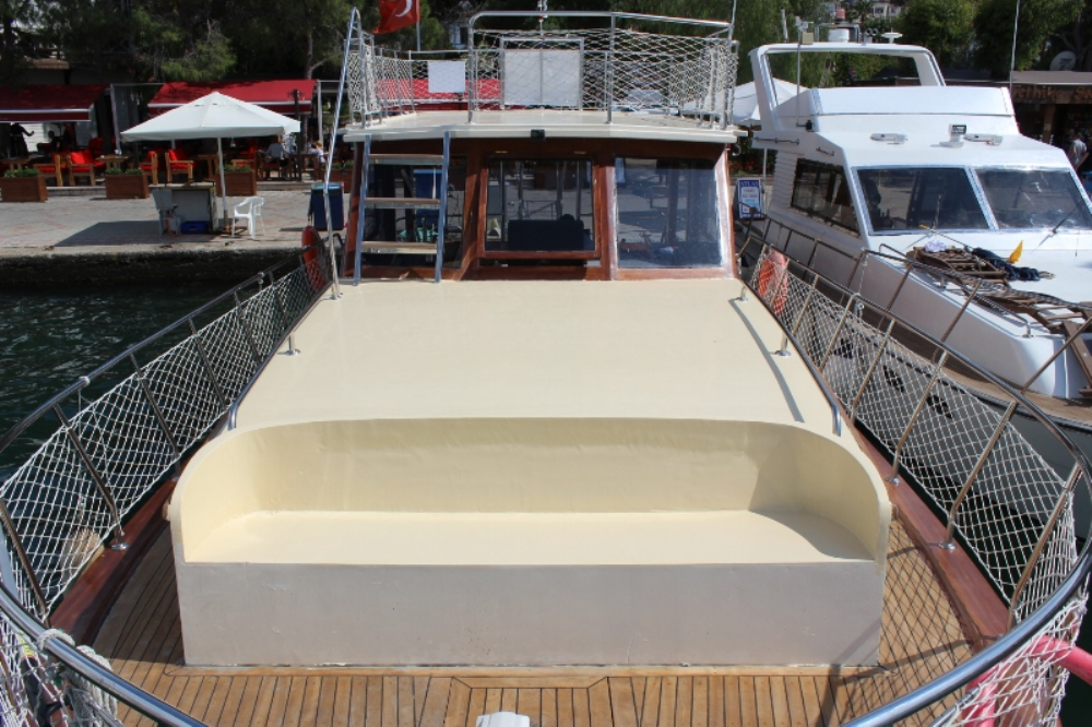 Teknemiz 12 m boyunda 4 m eninde günübirlik gezi teknesidir. Teknemiz aileniz veya arkadaşlarınız ile özel bir gün geçirmeniz için kiralamaya uygundur. 1 adet lüks kabini bulunmaktadır. Gerektiğinde kabinli/yatılı olarak da kiralanabilir.